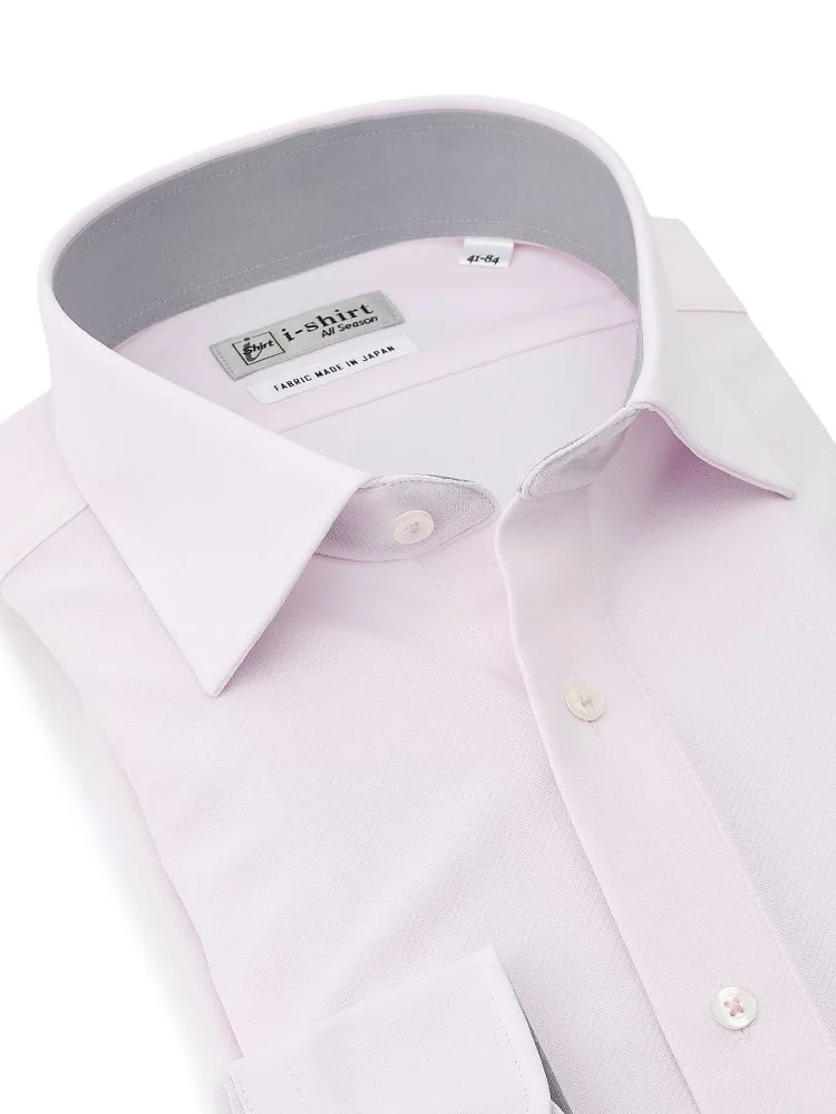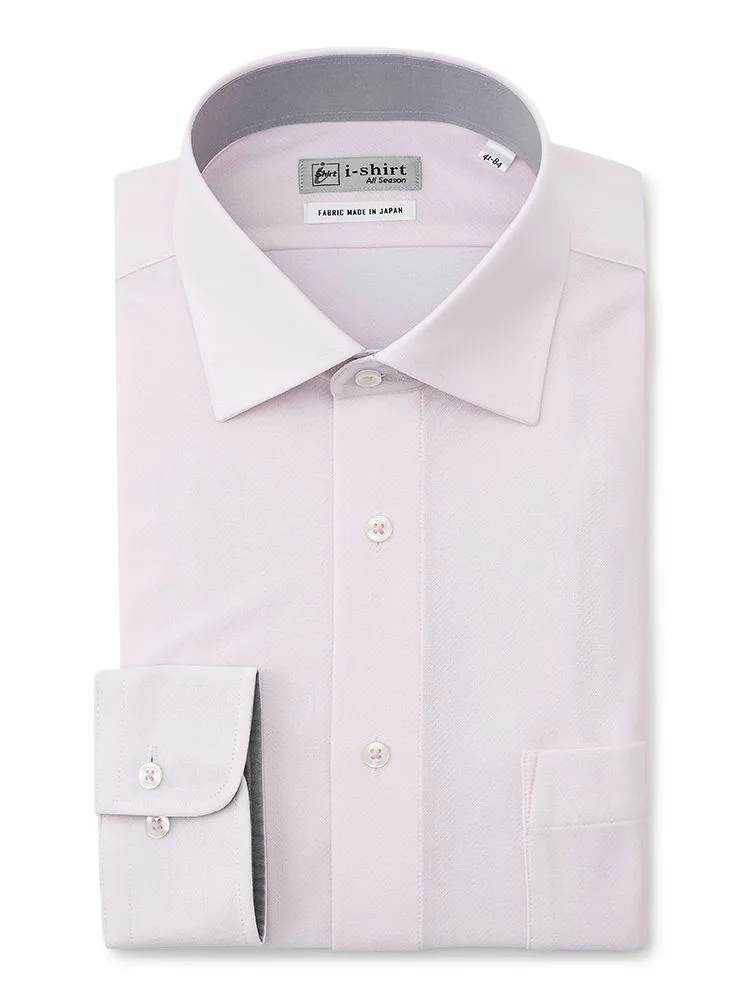 【形態安定】アイシャツ 長袖ワイシャツ ワイド 織柄無地 i-shirt 通年(L.ピンク)