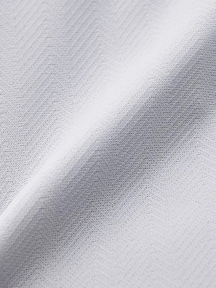 こだわりの日本製生地はソフトなポリエステルニットで、スポーツウェア等にも使われる高機能素材。体の動きに合わせて生地が伸び縮みする高いストレッチ性が特徴で、動作時の負荷が少なく着用ストレスも軽減します。