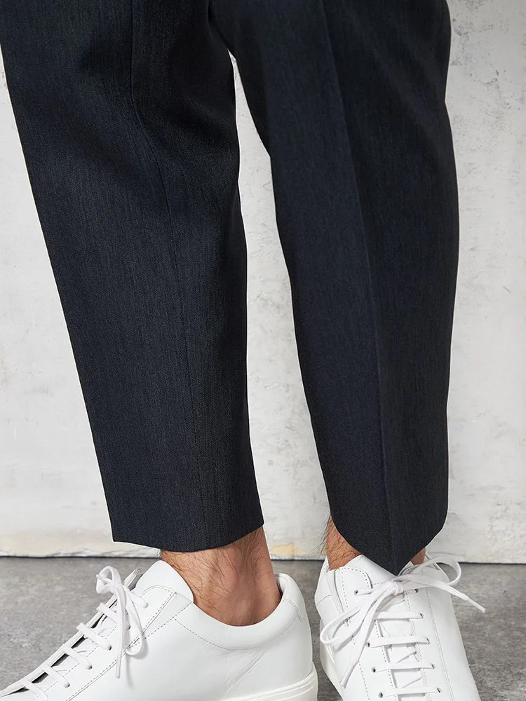 テーパードラインの裾巾が細い為、やや短めのアンクル丈での着用がお勧め。モダンなルックを叶えてくれる一本です。