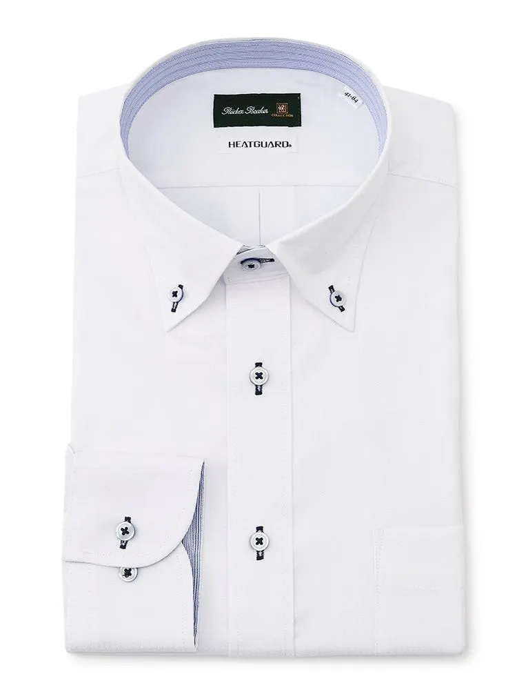 【遮熱&UVカット】長袖ワイシャツ ボタンダウン 織柄無地 リッケンバッカー ヒートガード 春夏