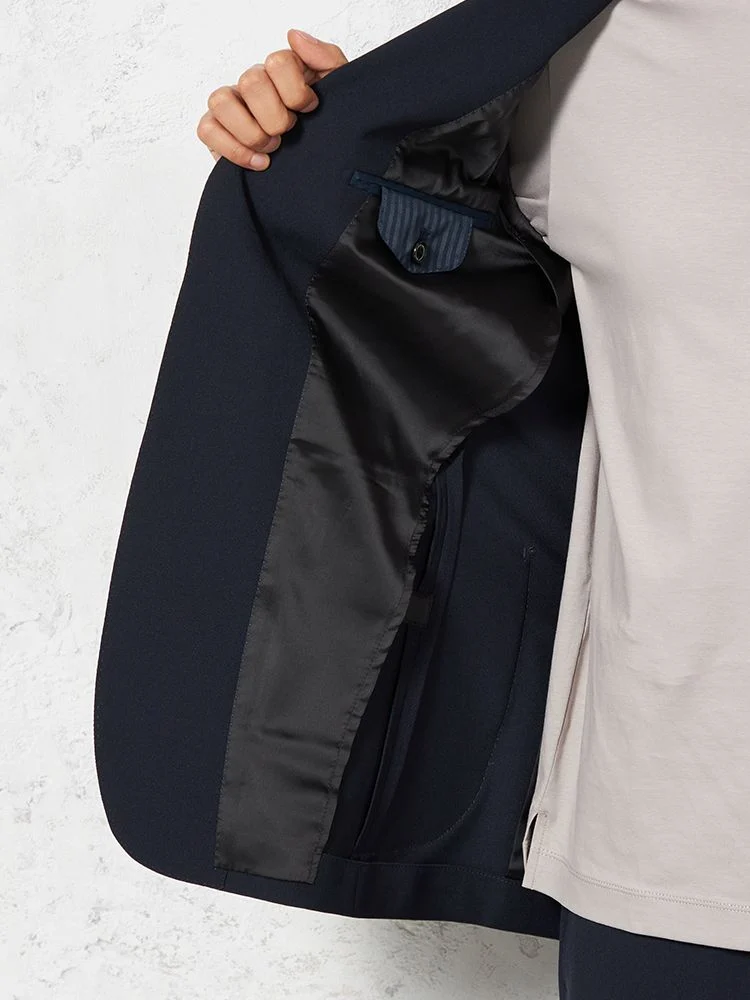 【KATHARINE E HAMNETT-キャサリン・イー・ハムネット-】メッシュ調 紺ブレザーメタルボタン【セットアップ商品有】軽量 イージーケア ネイビー 無地 春夏