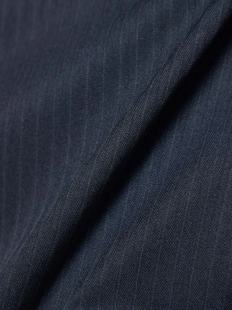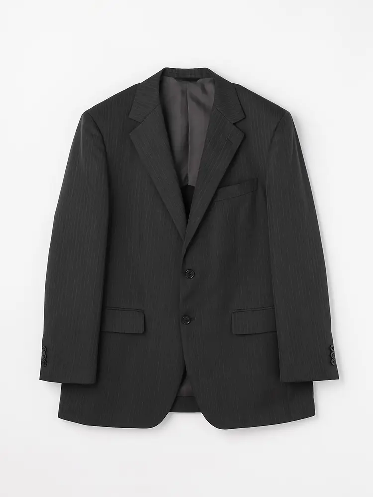 定番色にピンストライプ柄で、スタイリッシュにまとめたツーピーススーツ。