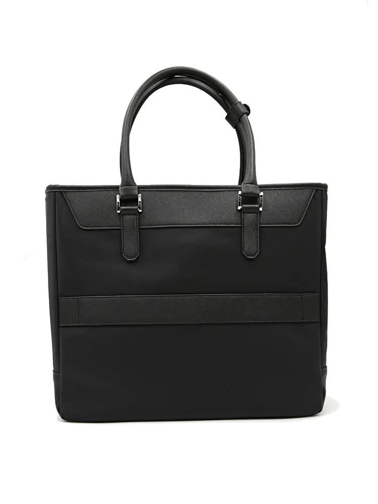 【KATHARINEEHAMNETT-キャサリン・イー・ハムネット-】トートバックナイロン×サフィアーノ調多収納無地通年