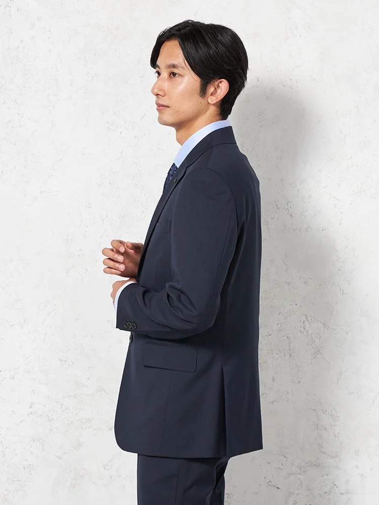 サスティナブルウール素材を使用し、環境にも配慮したツーピーススーツ。