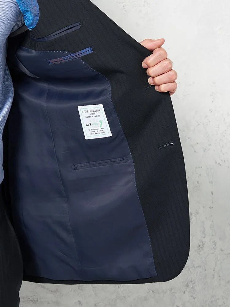 【ウール100%】スーツ2つボタン英国製素材【JOHNFOSTER】シャドウストライプネイビーSTOVEL&MASON通年