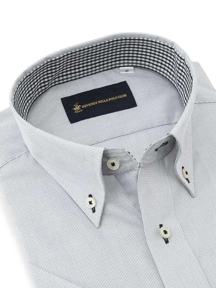 【形態安定】半袖ワイシャツボタンダウン別布ストライプビバリーヒルズポロクラブ春夏