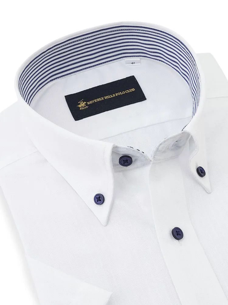 【形態安定】半袖ワイシャツボタンダウン別布ストライプビバリーヒルズポロクラブ春夏