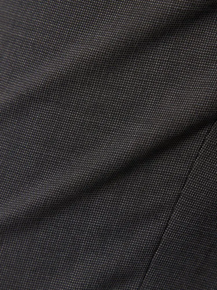 パンツの腰回りに生地の折り込みがなく、スッキリとしたシルエットを実現します。シンプルで洗練された印象を与え、すっきりとした着こなしが可能です。