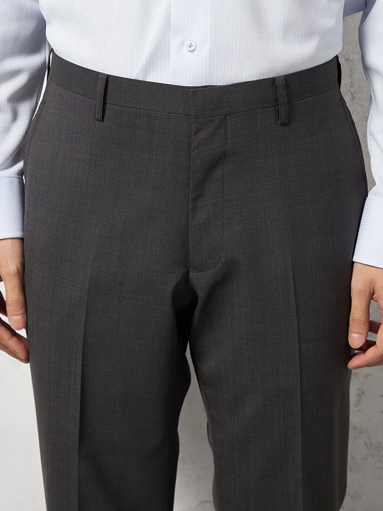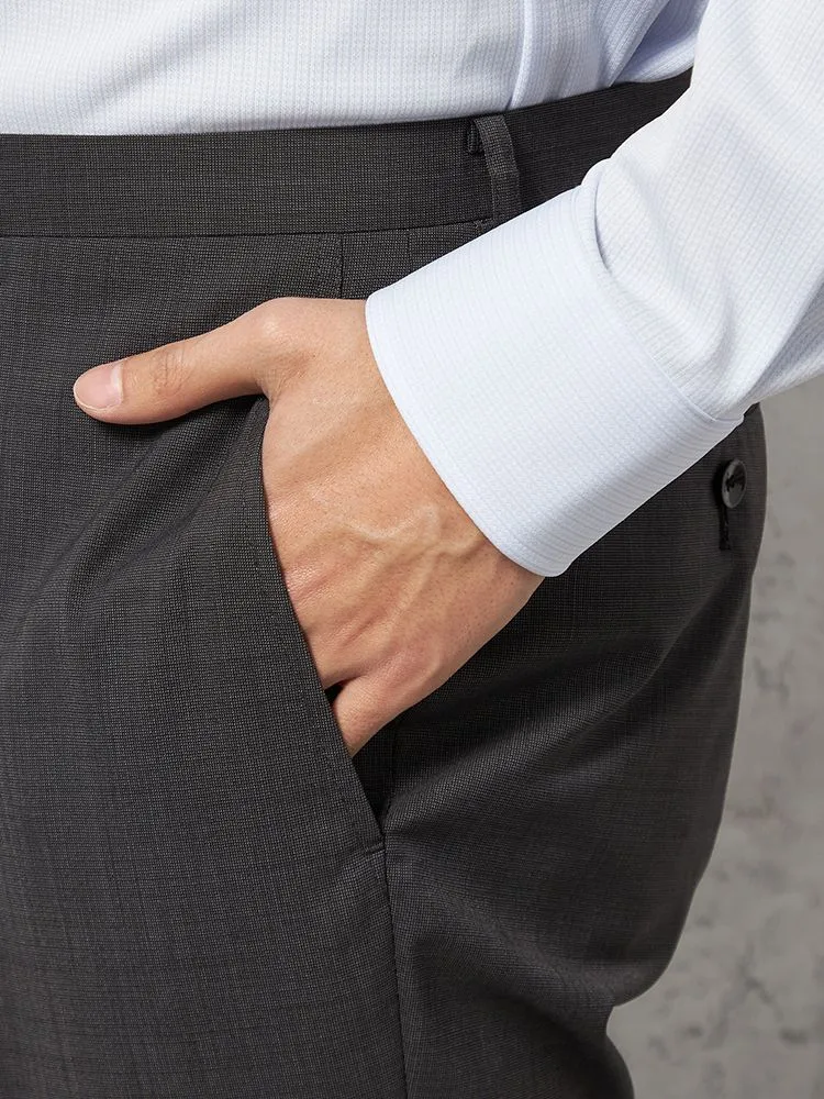 無地に近い感覚で取り入れやすい、ピンヘッド柄のスラックス。