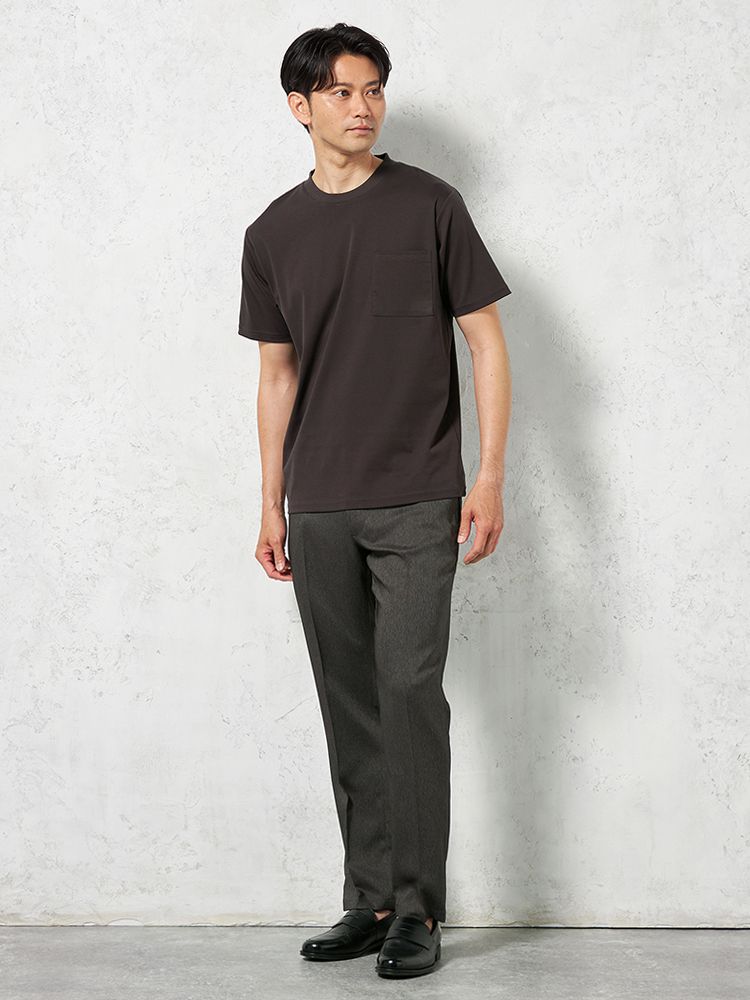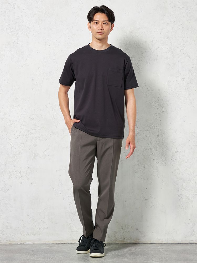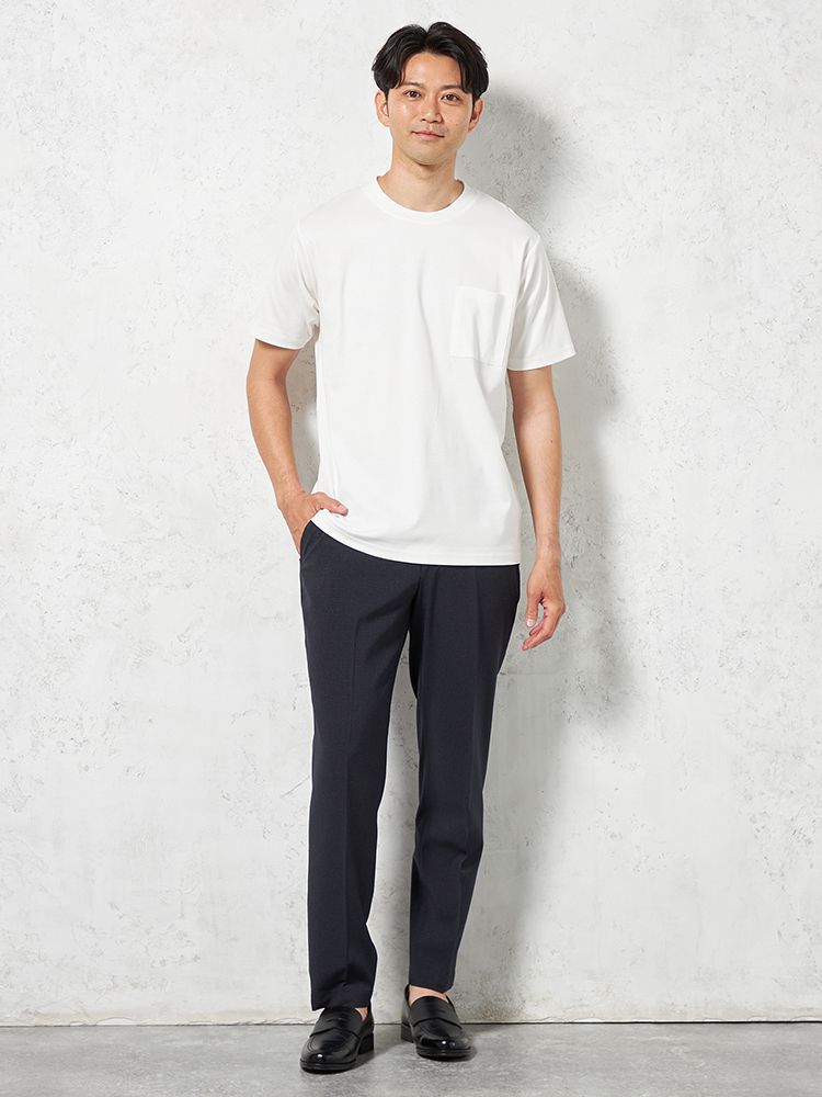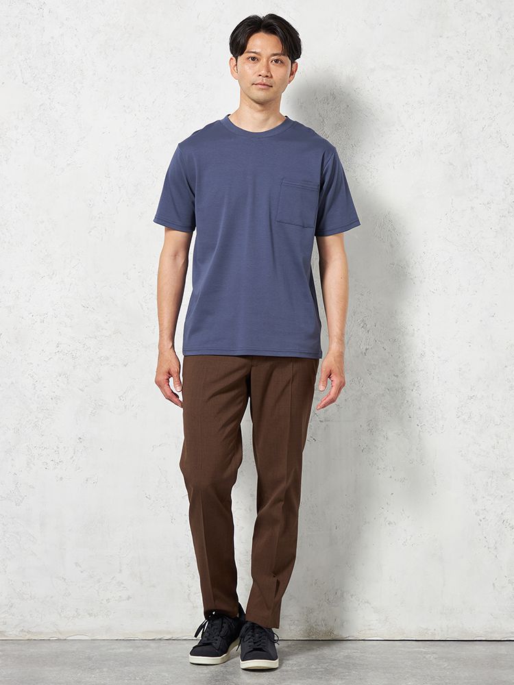 【汗じみ防止】半袖クルーネックTシャツポケット付ビズTシルケット加工カジュアルインナー無地TOKYORUN春夏