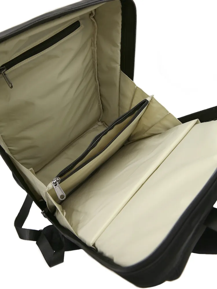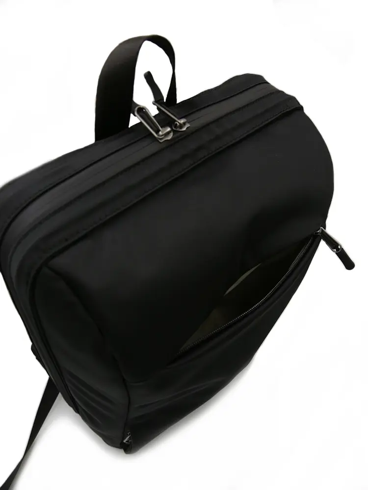 リュックの開閉口に特殊なパーツを使用しているので、口が簡単に大きく開く構造になっています(実用新案登録済み)。本体に撥水加工素材、ファスナーにYKK止水ファスナーを使用しているので、雨や水に強い仕様となっています。通勤リュックからプライベートまで、長くご愛用いただける一品です。
