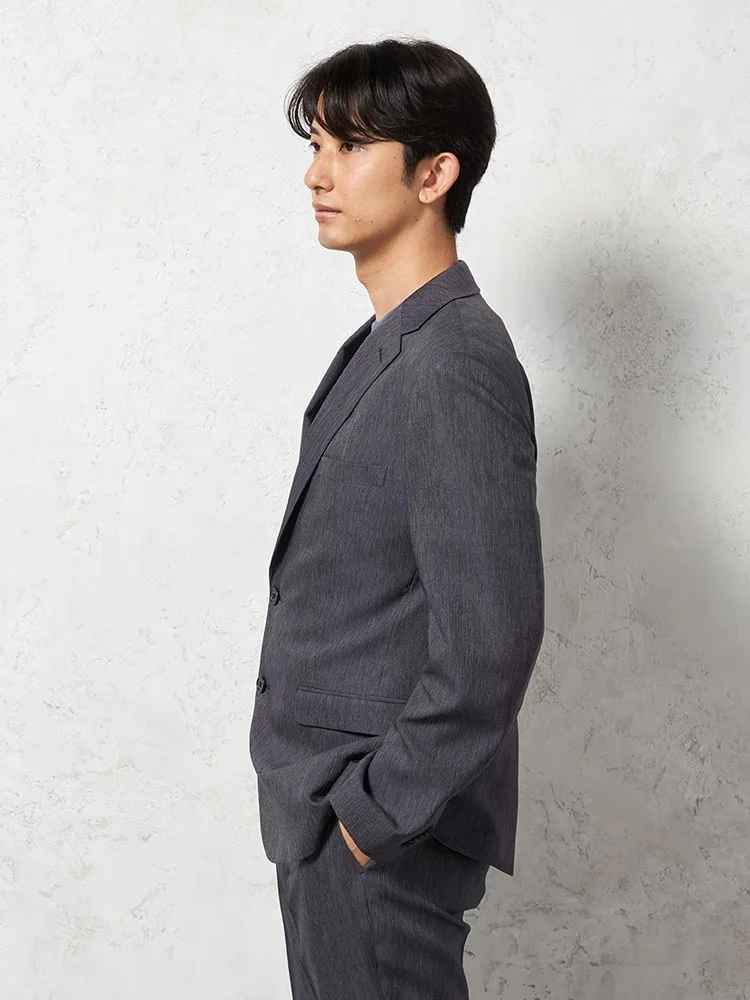 素材感で個性を出せるよう、ジャケット、パンツともにベーシックなデザインで仕上げられています。