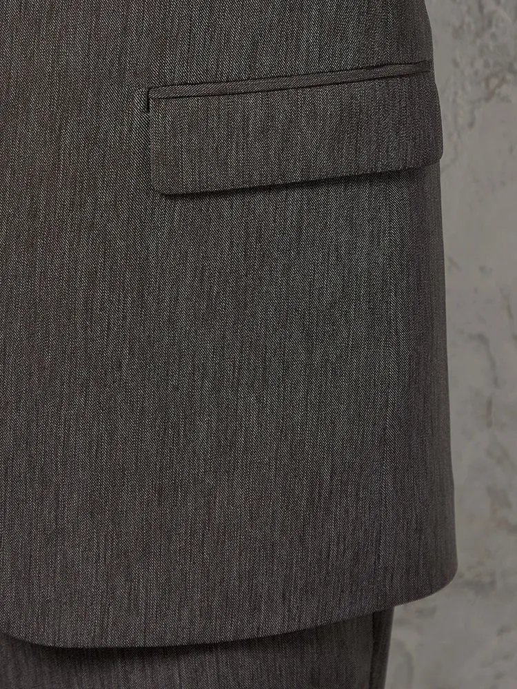 切り込みが1本のセンターベントデザインです。細身でスッキリとしたシルエットが特徴で、快適な着心地を提供します