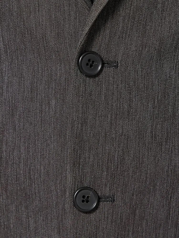デニム生地で仕立てた、モダンな表情の2つボタンセットアップスーツ。