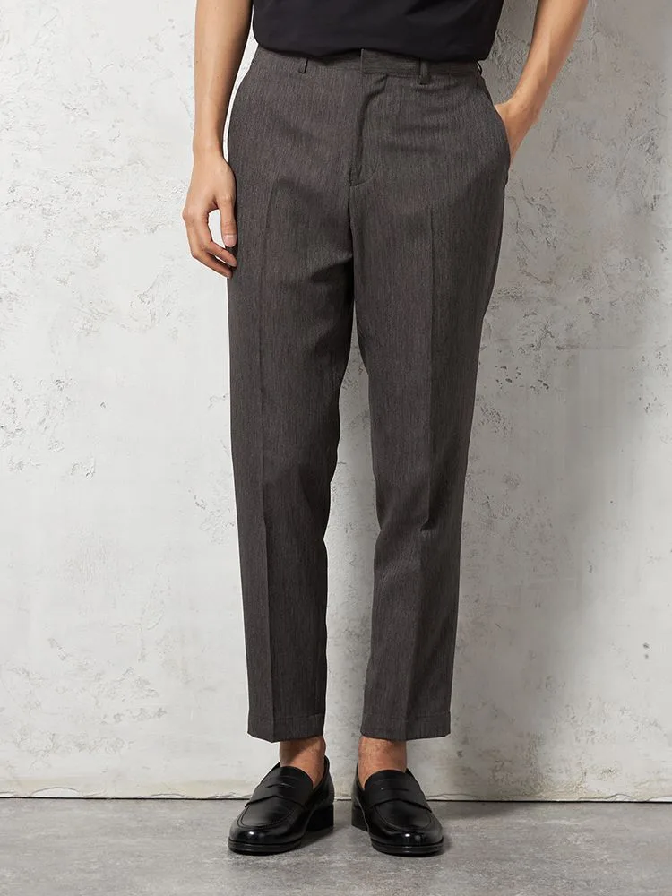 パンツはノータックのアンクル丈で、すっきりと着こなせます。