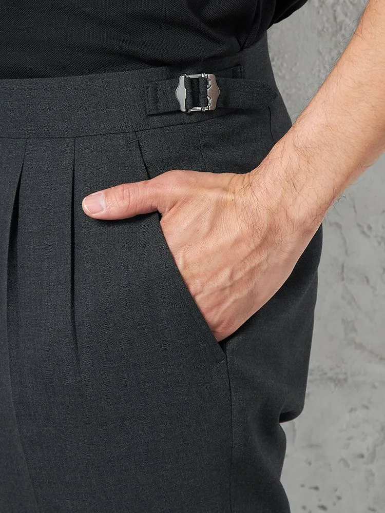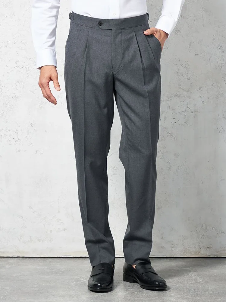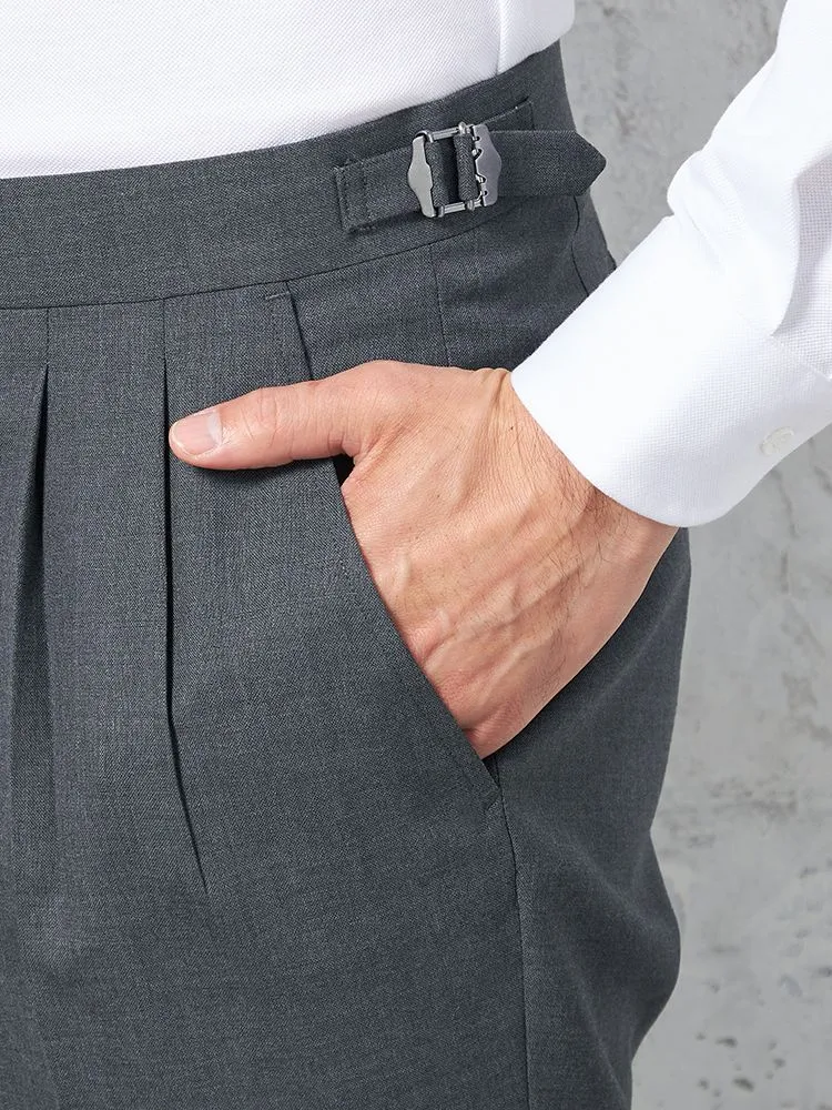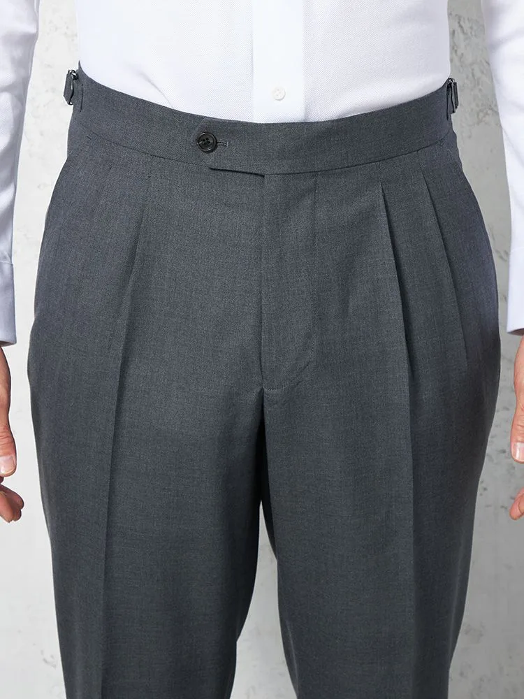 【ウール100%】パンツ ツータック インポート素材REDA使用 サイドアジャスター付 無地 ARTHUR PHILLIPPE-アーサーフィリップ-(S.グレー)