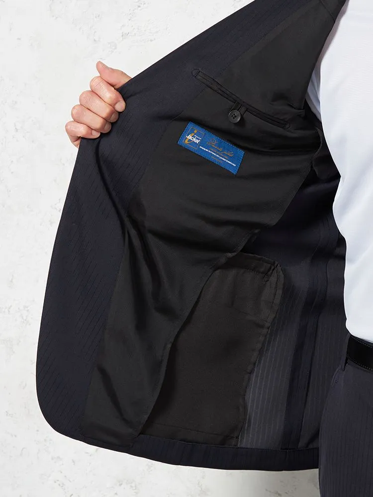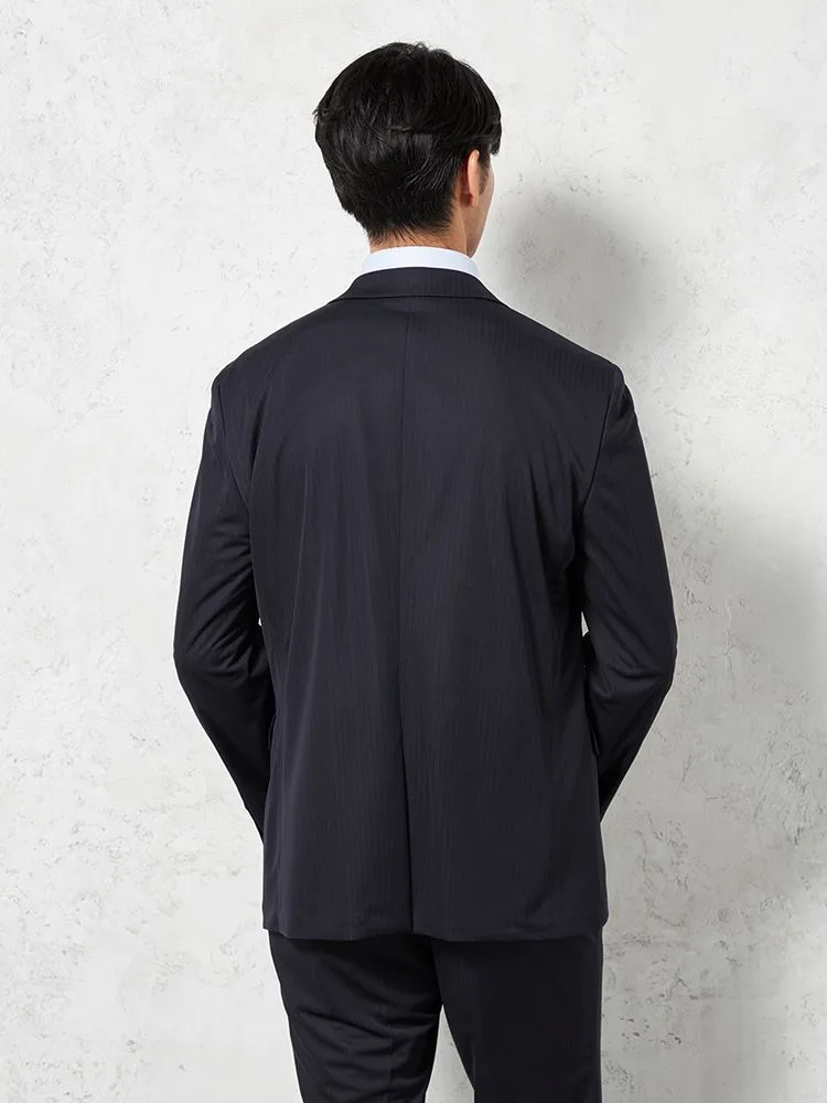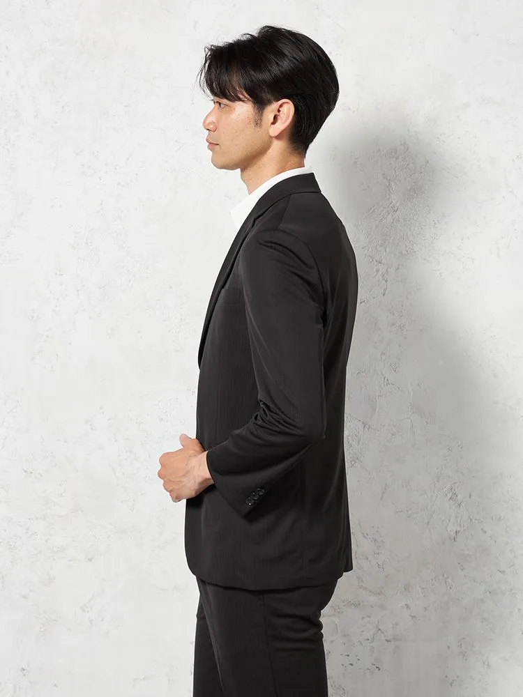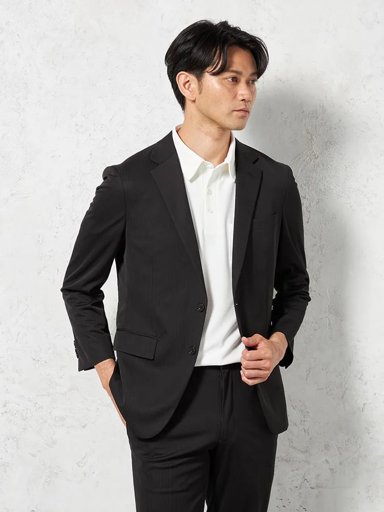 【超軽量】ジャケット 2つボタン【セットアップ商品有】ストレッチニット素材 高通気 シャドウストライプ i-Jacket-アイジャケット- 春夏(ブラック)