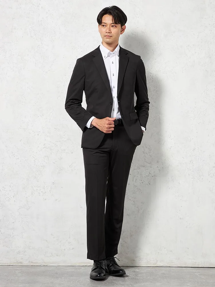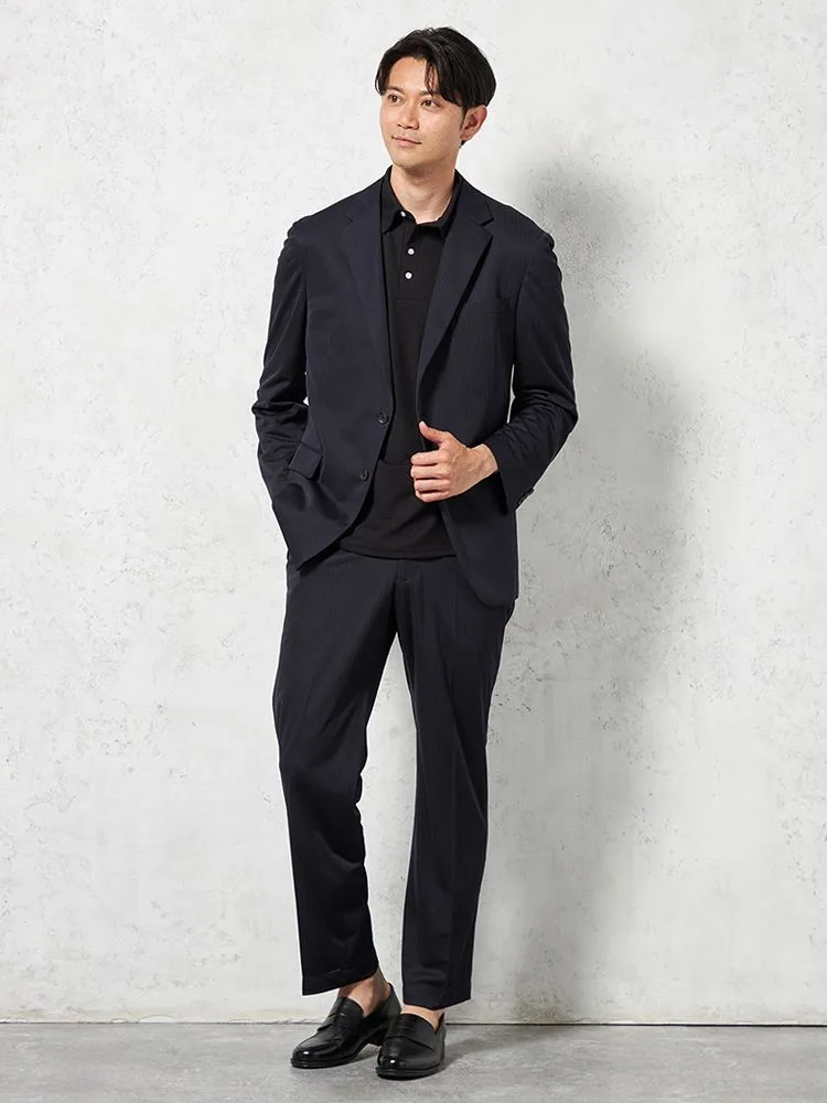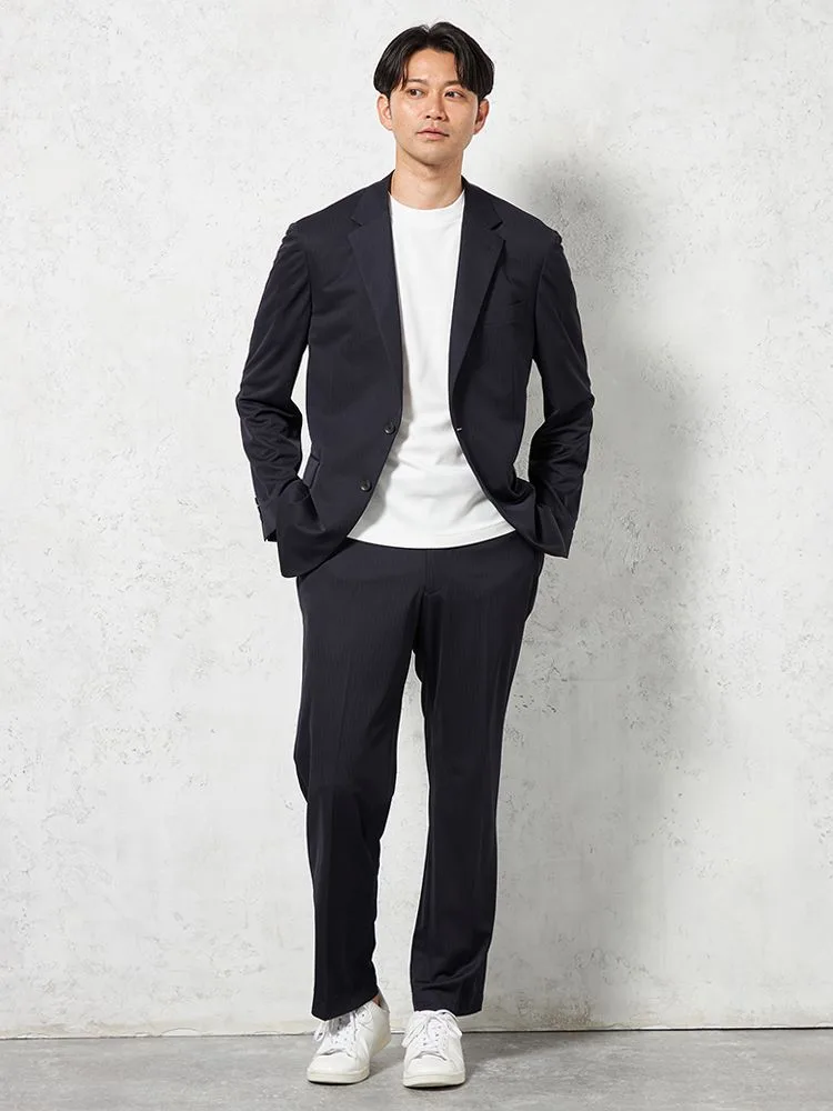 普通のスーツのようにカッチリ感も残しているので、キチンと見えてビジネスシーンにぴったりです。