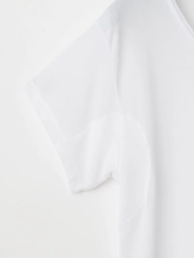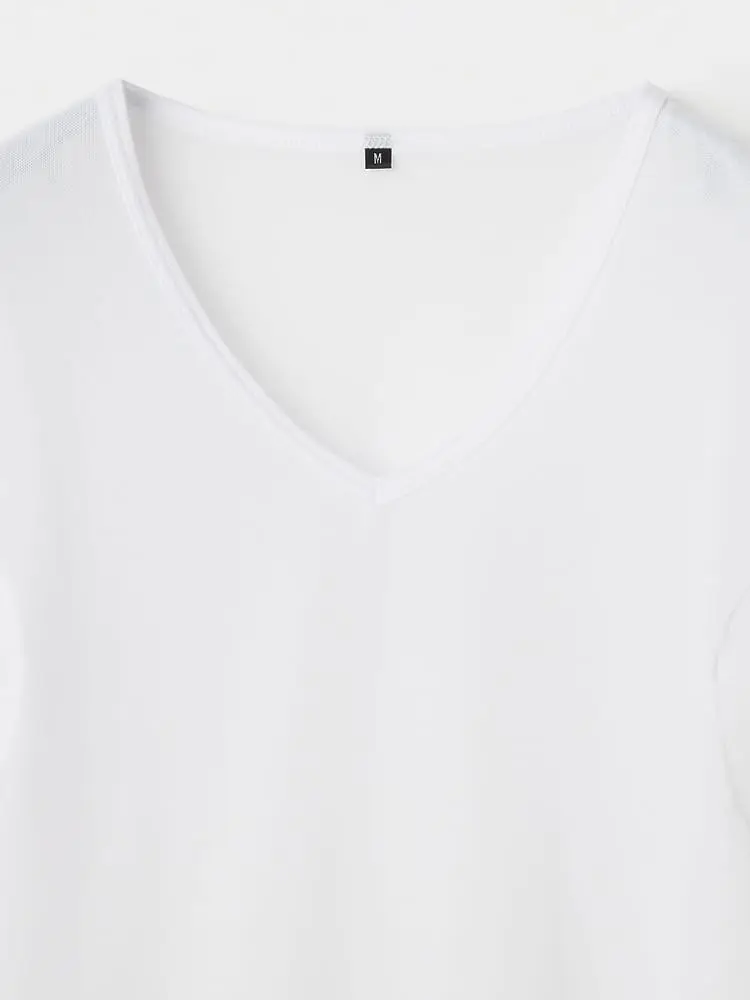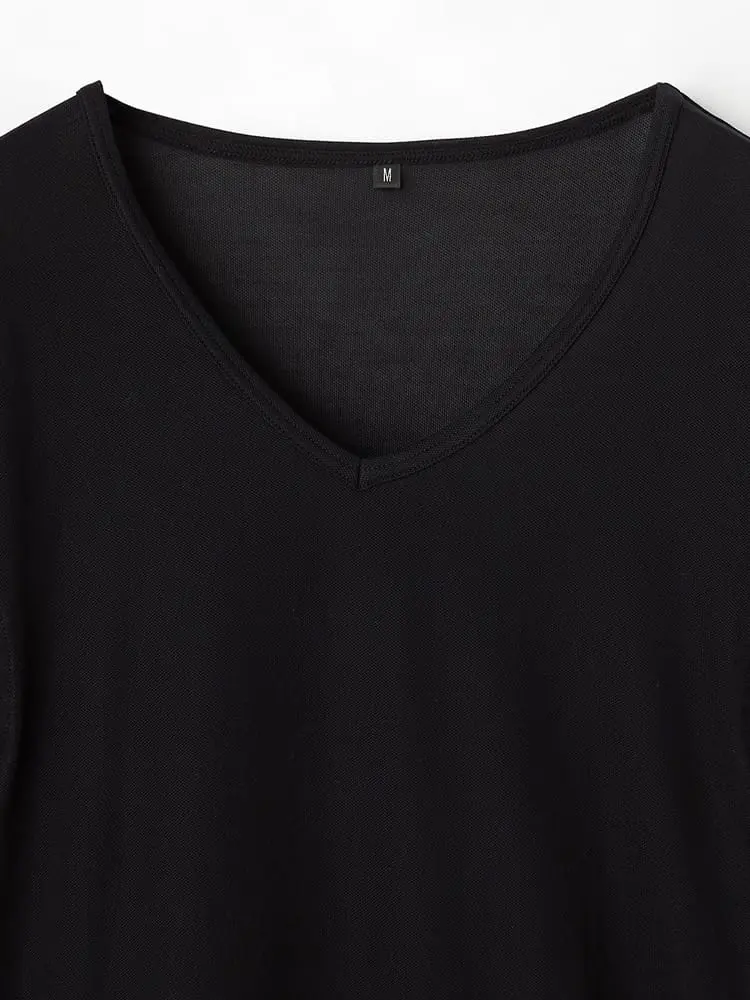 動きやすい半袖&シャツから覗かないVネック仕様。