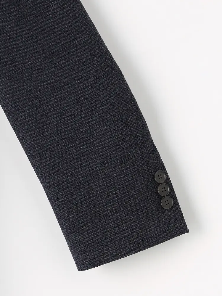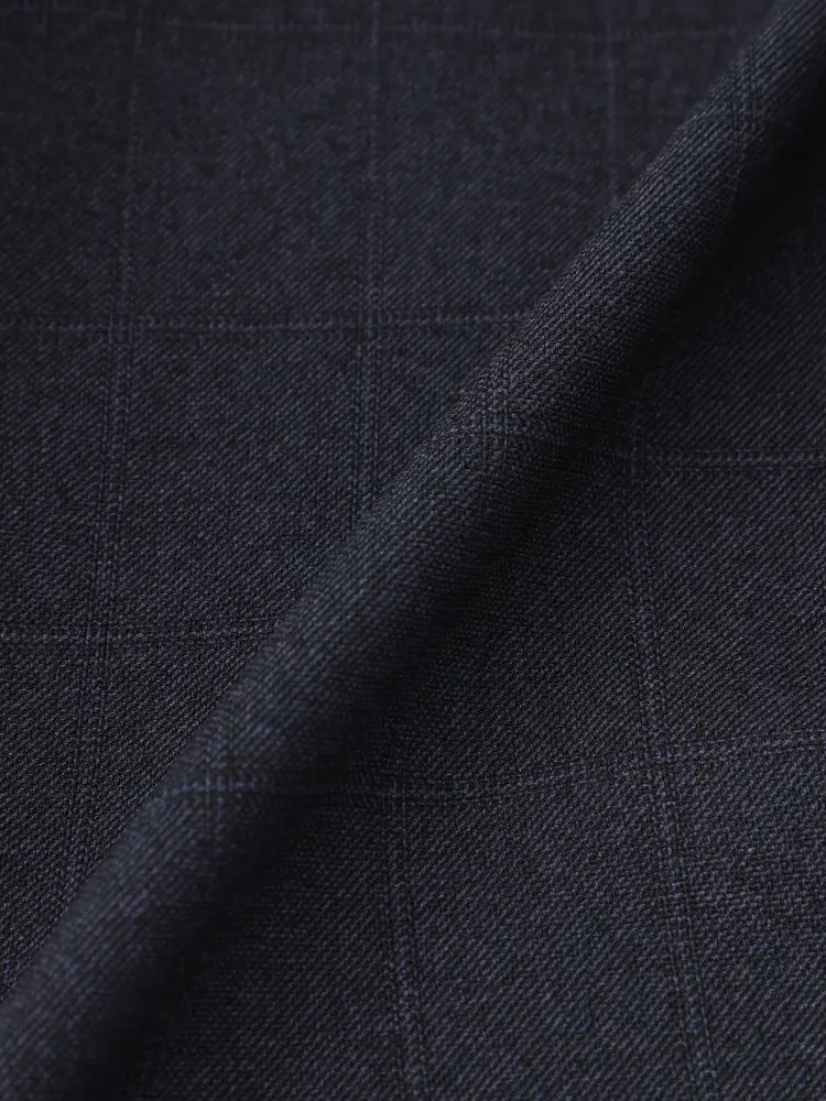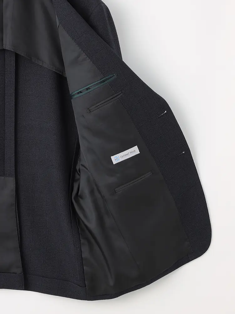 ウールタッチのポリエステル素材は、優れたストレッチ性と防シワ性が特徴です。