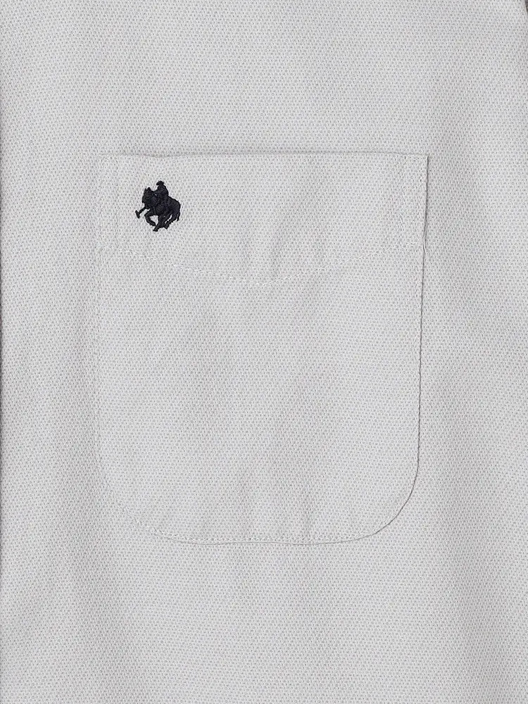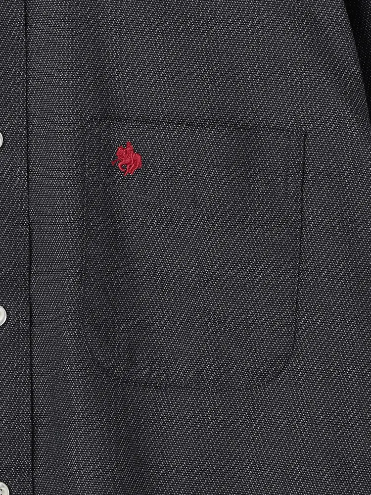 胸ポケットにはマークの刺しゅうのワンポイントをあしらっています。
