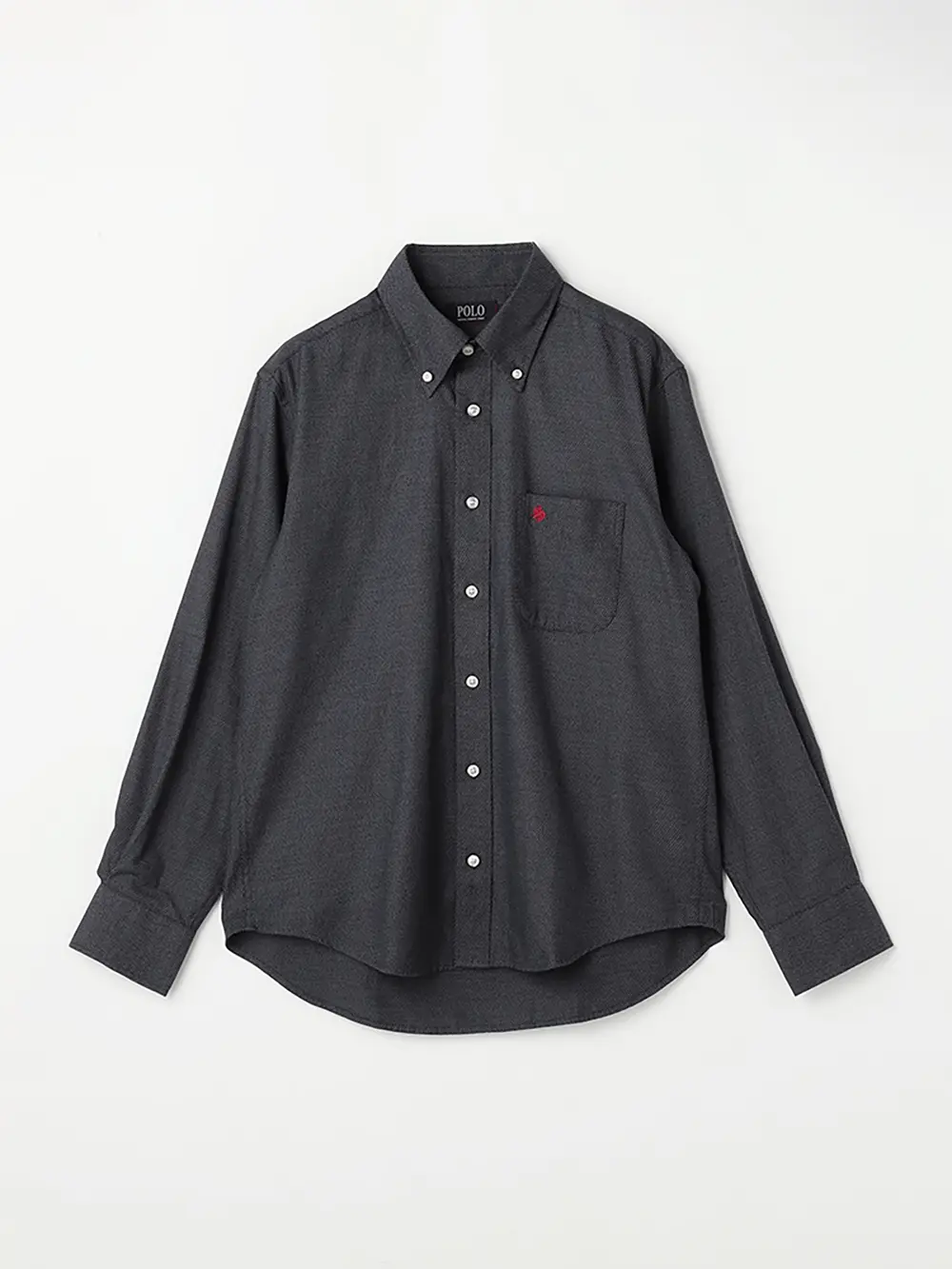 【POLO BCS】 デニムライク ボタンダウン カジュアルインナー シャツ 長袖 織柄無地 通年(ネイビー)