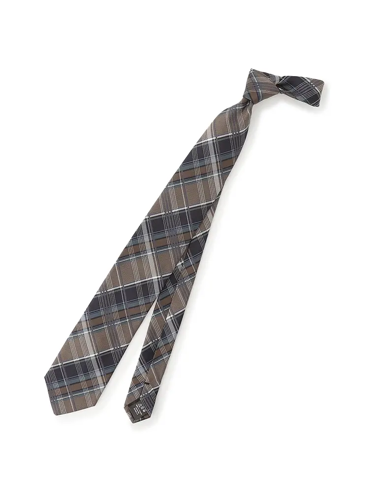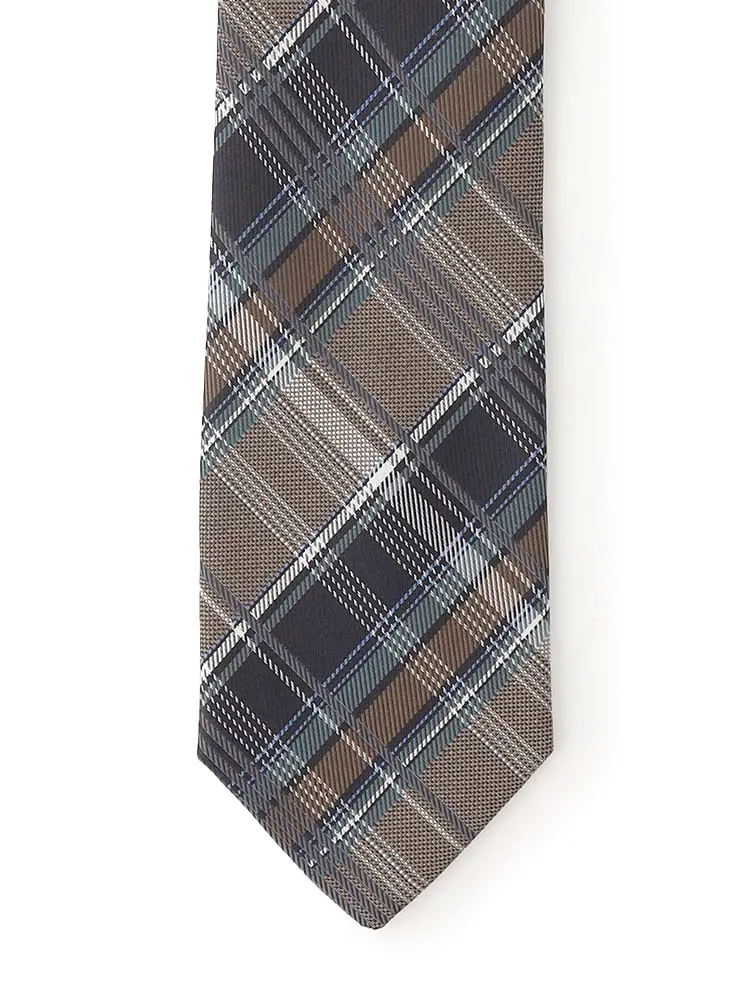 親しみやすさを感じる、チェック柄のネクタイ。