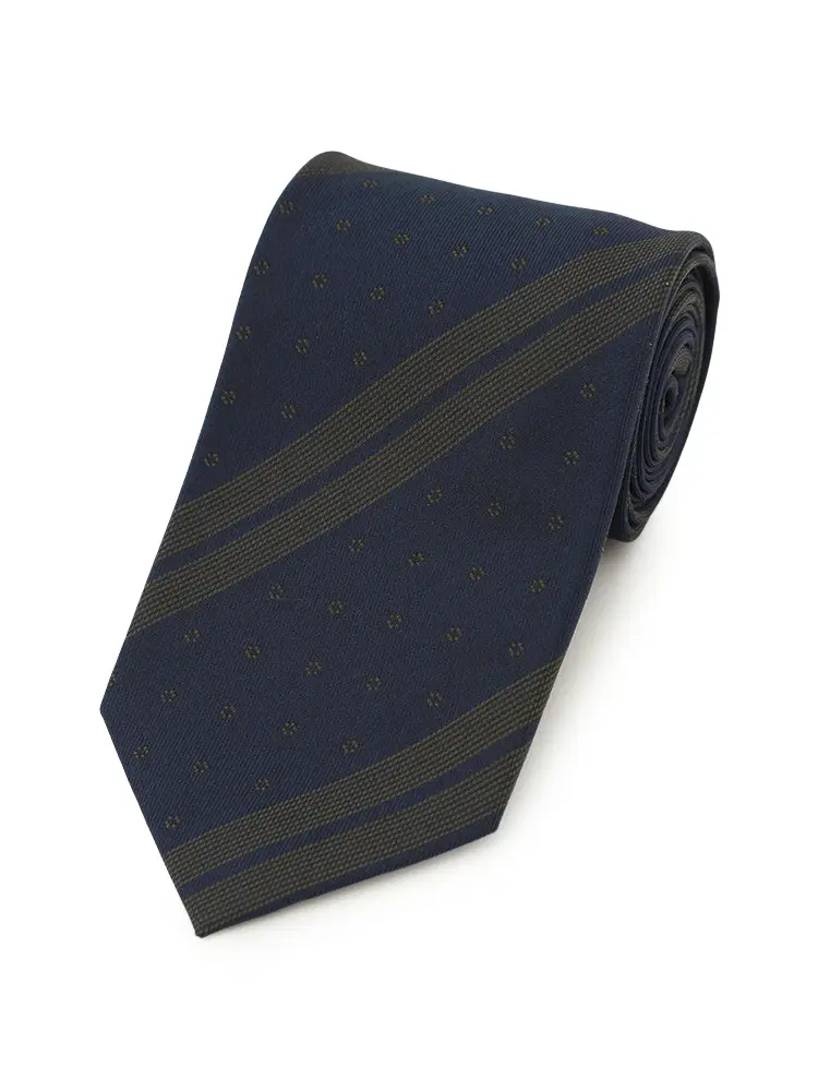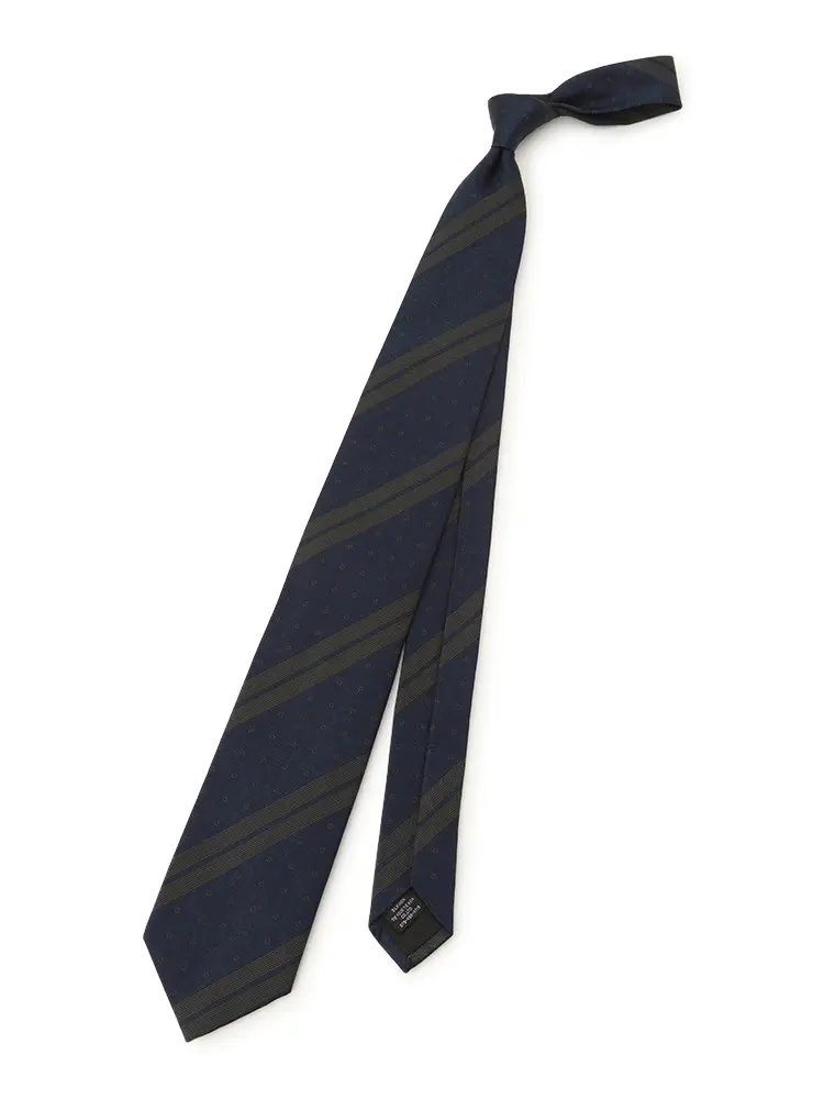 【シルク混】ネクタイレギュラーリクルートタイネイビーストライプnero通年