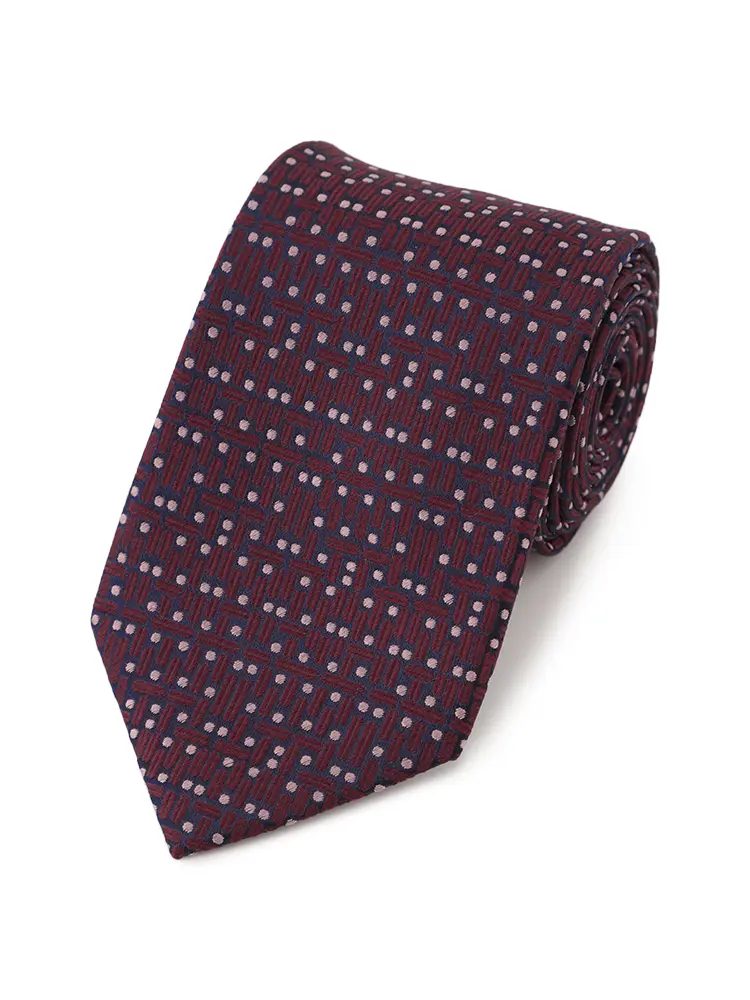モードな雰囲気や上品な華やかさがある、幾何学的な小紋柄のネクタイ。