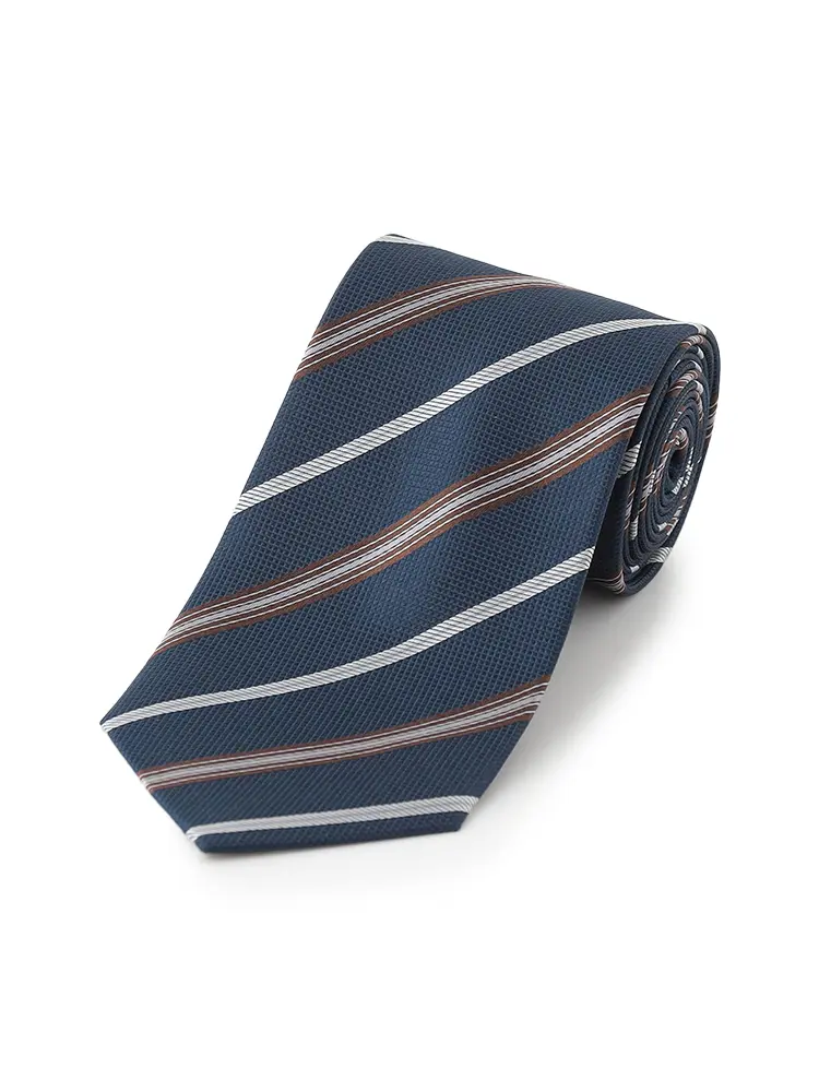 【リッケンバッカー】 シルクミックスネクタイ ストライプ レギュラー 秋冬(ブラウン)