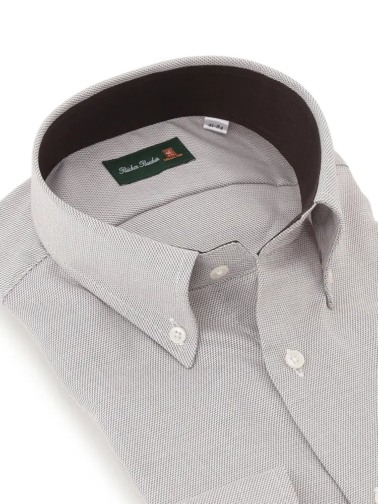 ブラウンをミックスして独特の雰囲気を出したボタンダウンシャツ。
