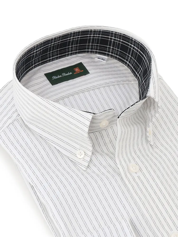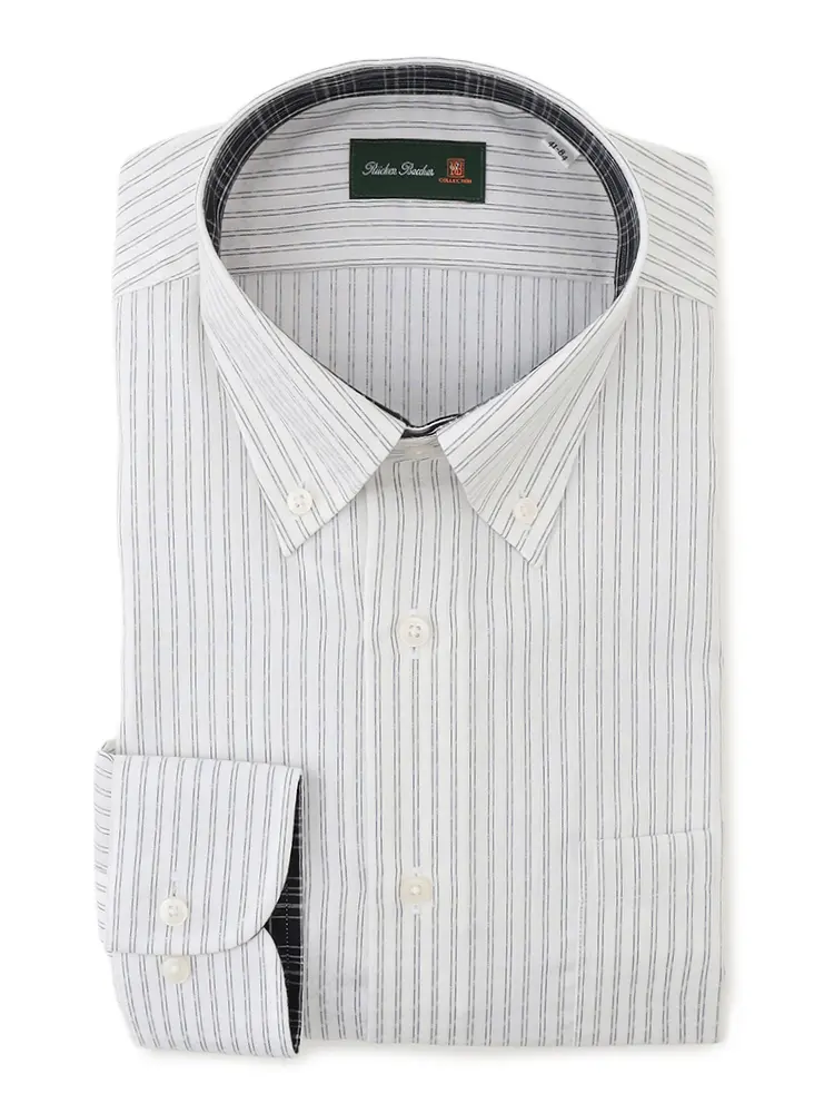 【形態安定】長袖 ワイシャツ ボタンダウン【コットンプレミアムケア】ストライプ リッケンバッカー 通年