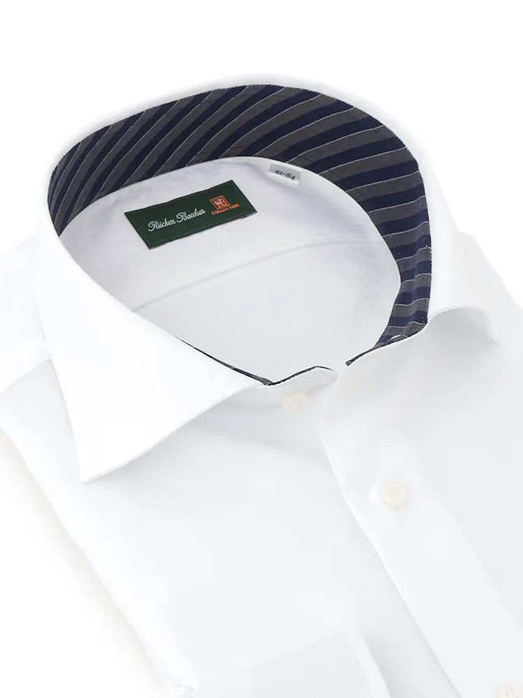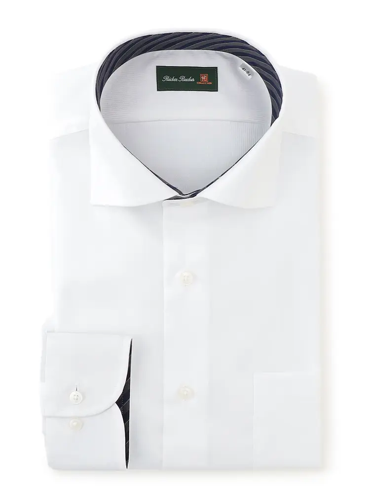 細かなドビーストライプを清潔感あふれるホワイトカラーで仕上げたワイシャツです。