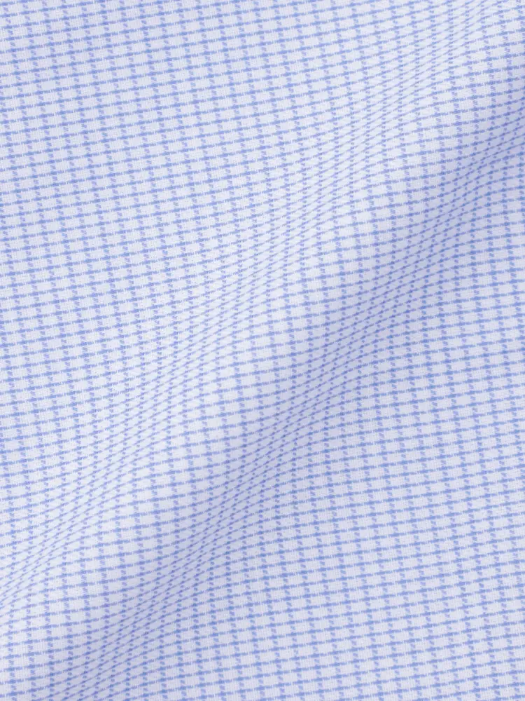 細やかな格子模様と清涼感あるサックスブルーが目を引く、トラッドなボタンダウンシャツです。