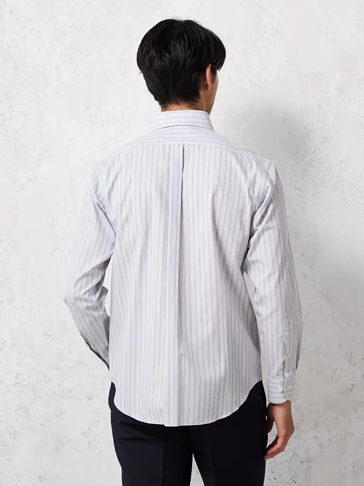 毎日のビジネススタイルにぴったりな、ノーネクタイでも着られる長袖シャツです。