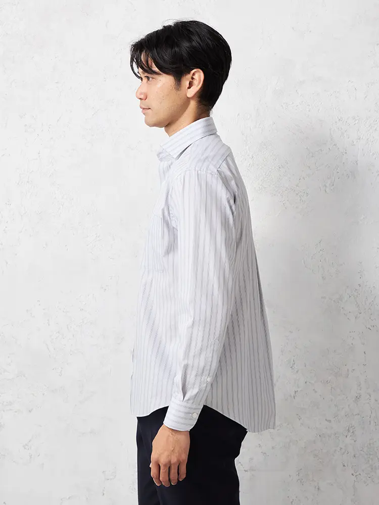 【形態安定】長袖 ワイシャツ セミワイド イージーケア ストライプ RON POSTAL 通年