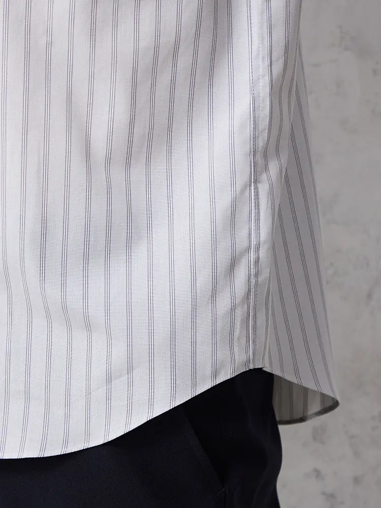 【形態安定】長袖 ワイシャツ セミワイドカラー シャドウストライプ柄【スリム】【フレッシャーズにもおすすめ】nero 通年【スリムデザイン】