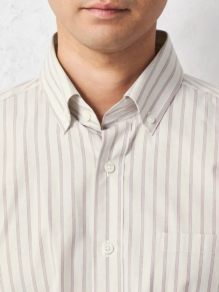 無地にはないおしゃれな雰囲気ただようストライプ柄の綿100% ビジカジシャツは、遠目にも存在感を発揮します。
