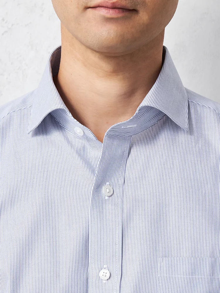 【形態安定】長袖 ワイシャツ セミワイド イージーケア ストライプ RON POSTAL 通年