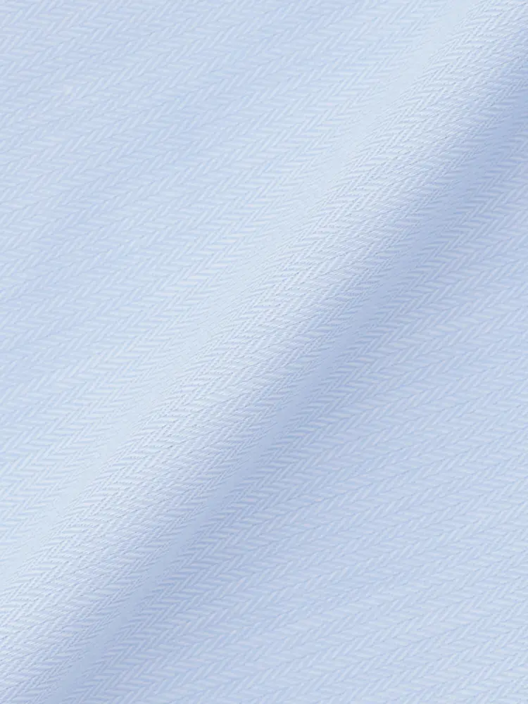 爽やかなサックスカラーのヘリンボーン柄が、無地にはない豊かな表情を演出する長袖シャツ。