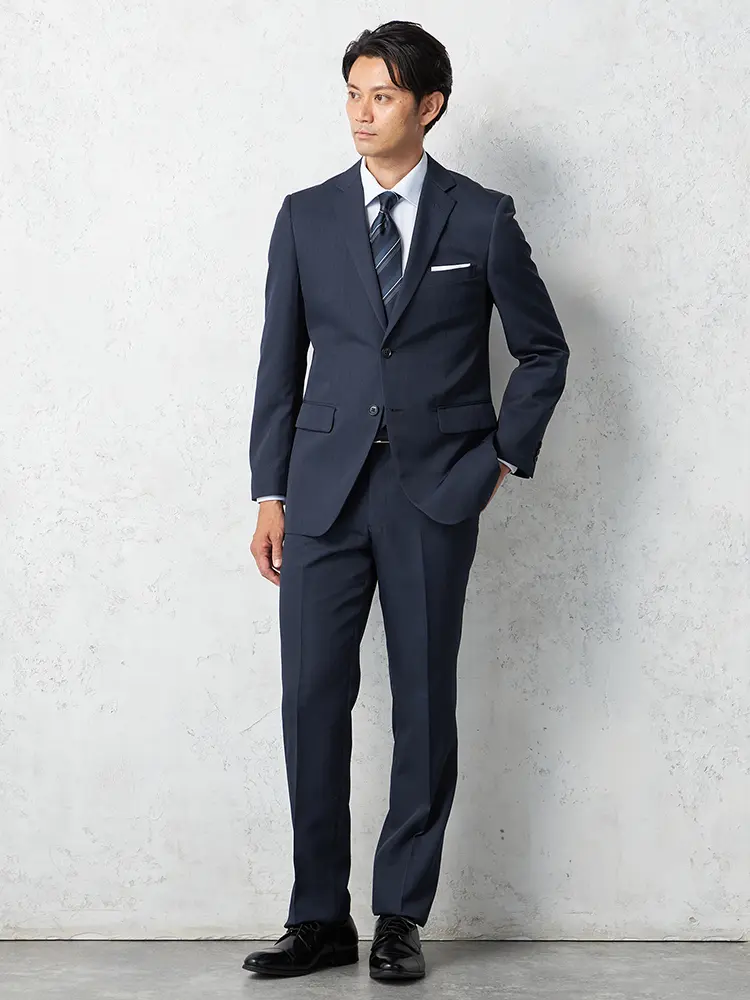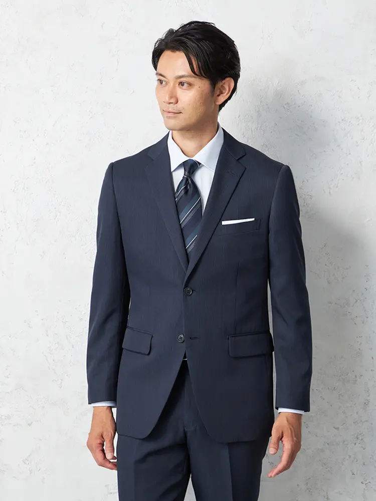 【即納】【WEB限定】スーツ2つボタンネイビーシャドウストライプ上下ウォッシャブル3シーズン対応