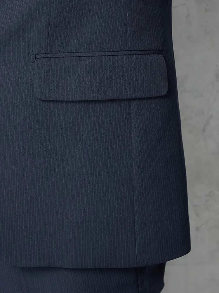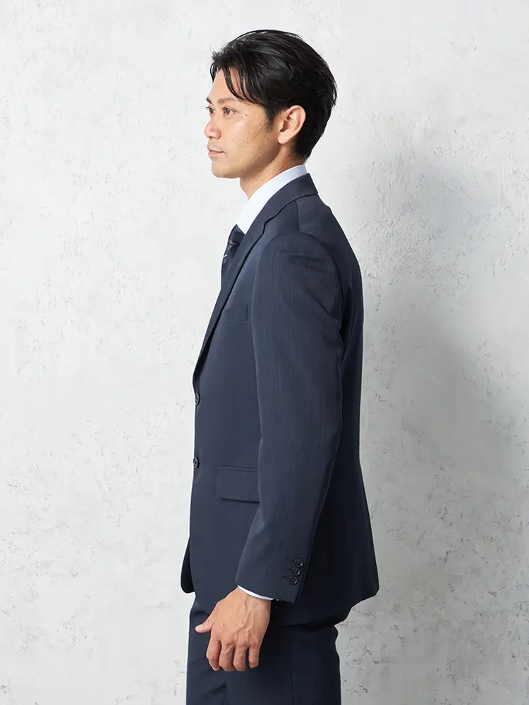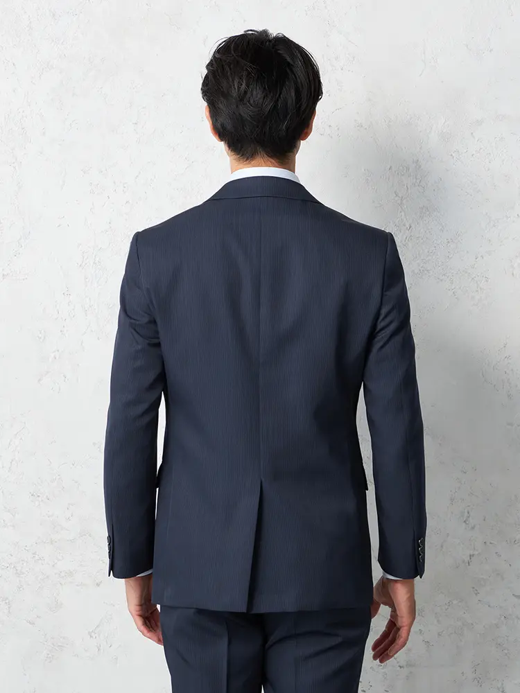 切り込みが1本のセンターベントデザインです。細身でスッキリとしたシルエットが特徴で、快適な着心地を提供します