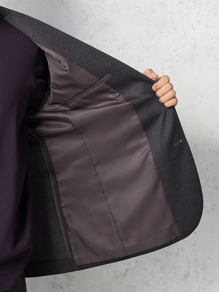 【ストレッチ】ジャケット2つボタンTOLLEGNO社生地使用キュプラ裏地グレンチェックS&MBLUELABEL