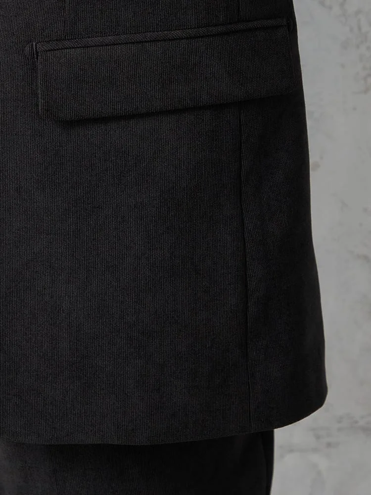 切り込みが1本のセンターベントデザインです。細身でスッキリとしたシルエットが特徴で、快適な着心地を提供します