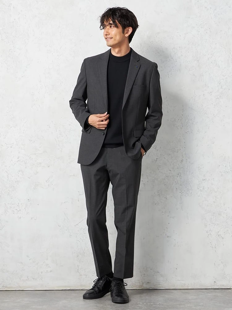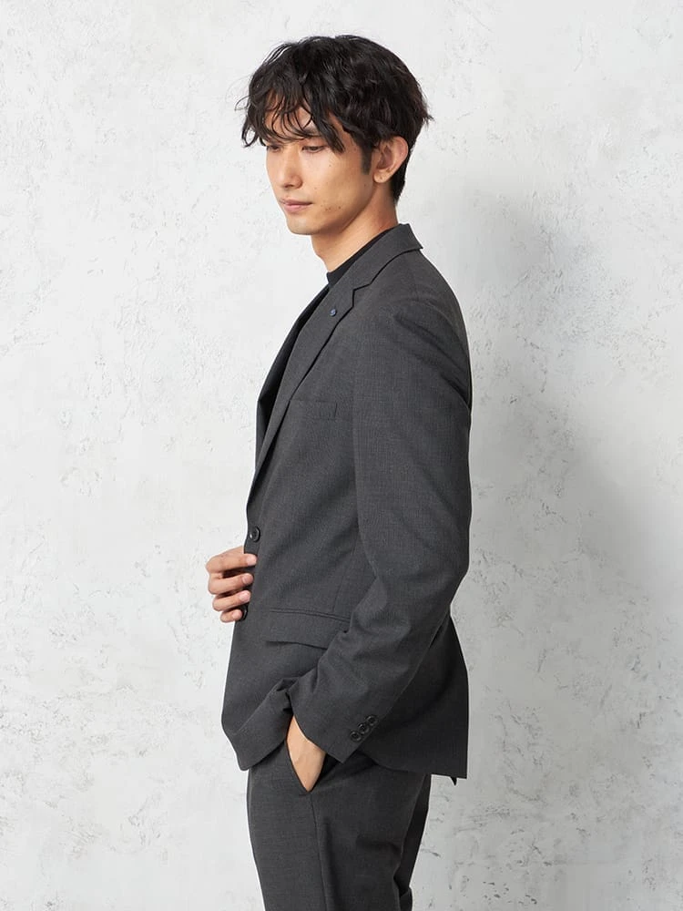 切り込みが1本のセンターベントデザインです。細身でスッキリとしたシルエットが特徴で、快適な着心地を提供します