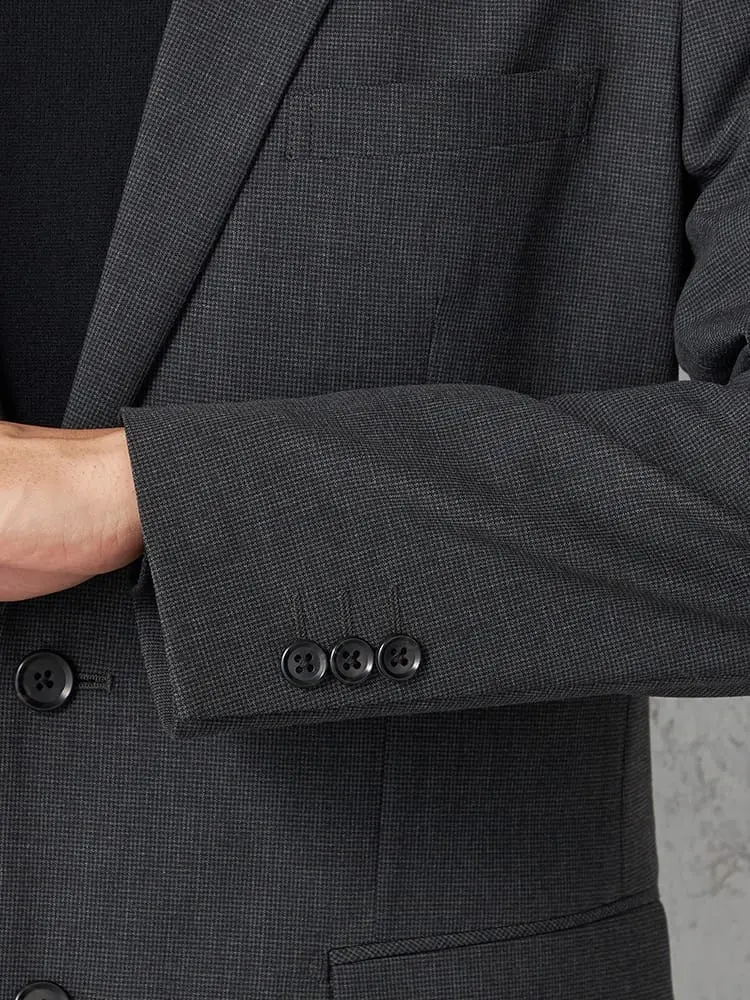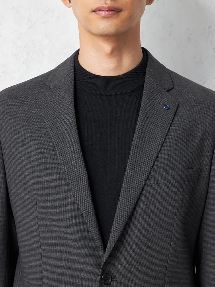 シックなグレーの、ハウンドトゥースチェック柄2つボタンテーラードジャケットです。