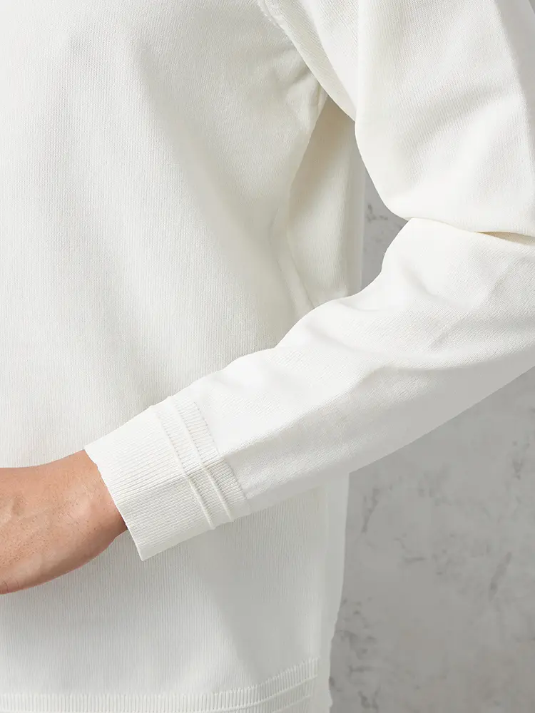 【TOKYO RUN】 14G天竺 モックネックニット カジュアルインナー 長袖 ウォッシャブル 抗ピリング 吸汗速乾 秋冬(ホワイト)