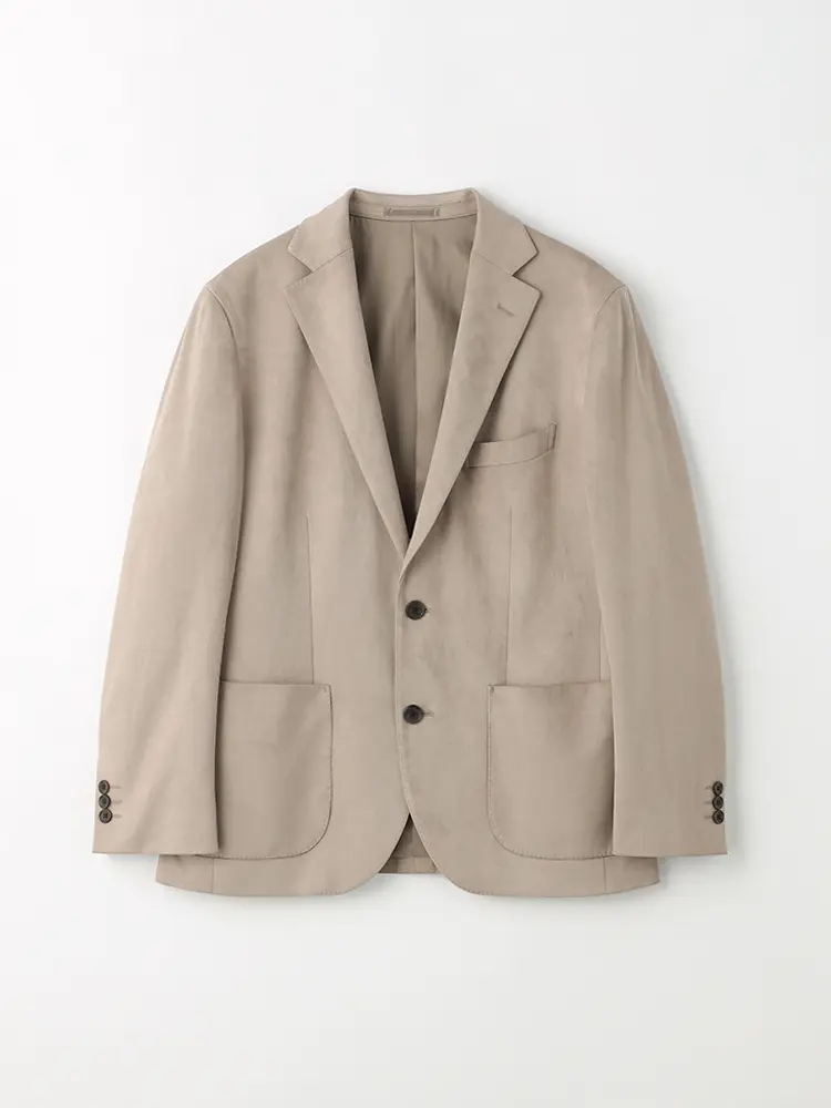 心地良くボディラインにフィットする背抜き仕様のテーラードジャケット。