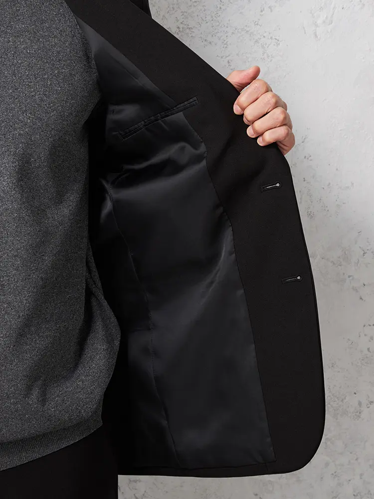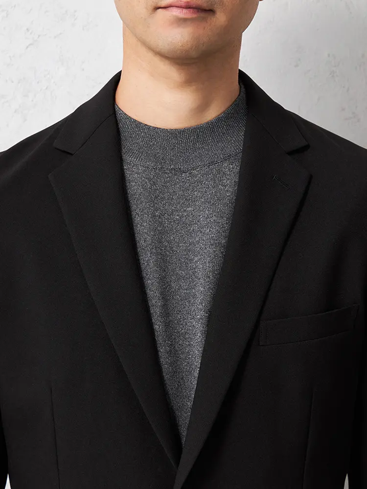 ストレッチやウォッシャブル機能もあり、オンオフ問わず、装いをシャープに引き締めたいシーンに最適な一着。