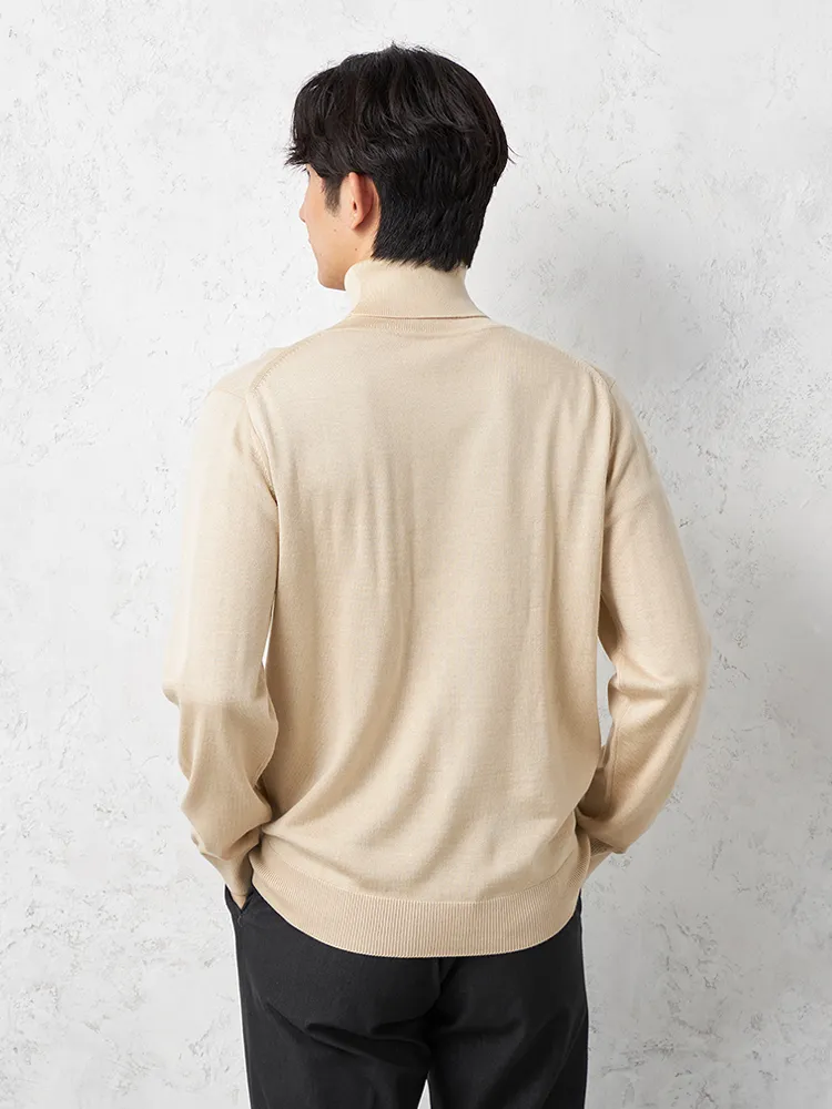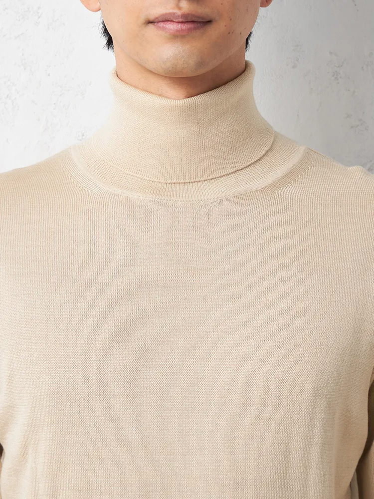 【リッケンバッカー】 無地天竺タートルネックセーター カジュアルインナー ニット 長袖 保温 秋冬(ベージュ)